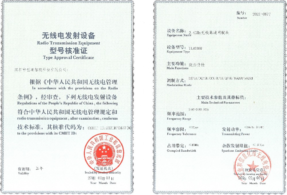 獲得多項知識產權及FCC、SRRC、CE、Telec、ROHS等多個國際技術認證
